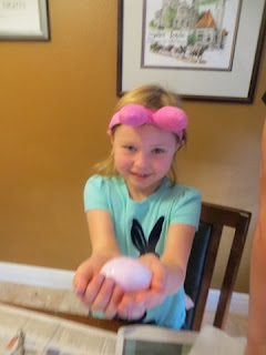 We put pennies, nickles, dimes and quarters in the eggs...each child ends up with 95cents. Blue eggs for Landon, green to match his shirt for Colvin and, pink, of course, for Lei Lei.