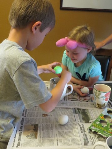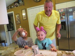 Today, the Grands were all off school as was their mama. With Papa in charge, the Grands and he dyed Easter eggs. This has been a tradition with them since all were little toddlers. Here are a few candid shots for your viewing pleasure.